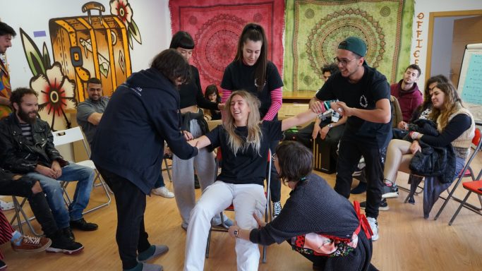We conclude the afternoon session with an activity in couples in which we could work the trust of the partner. It was amazing and we created incredible interviews! After that, we presented the secret friend game and explain some logistical aspects about the accomodation!!